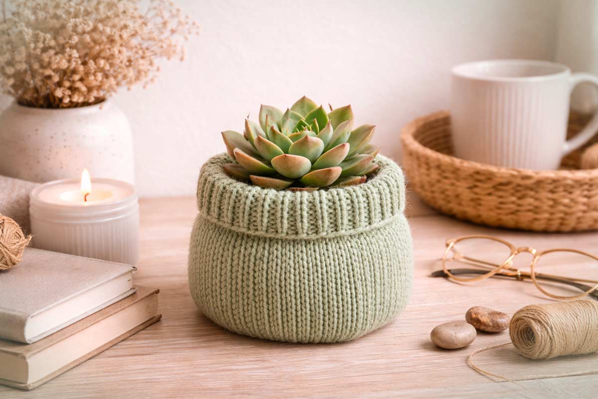 Chi non ha mai trovato un maglione ormai fuori moda ma ancora morbido al tatto? Tagliare una manica o il bordo inferiore e farne una fodera per un vaso richiede solo qualche minuto e un po’ di attenzione alle proporzioni. I colori neutri o le lane grosse funzionano benissimo per le piante grasse o i piccoli vasi delle aromatiche, da tenere sul davanzale o sulla scrivania. Un dettaglio che fa subito atmosfera, specie nelle giornate fredde o piovose.
